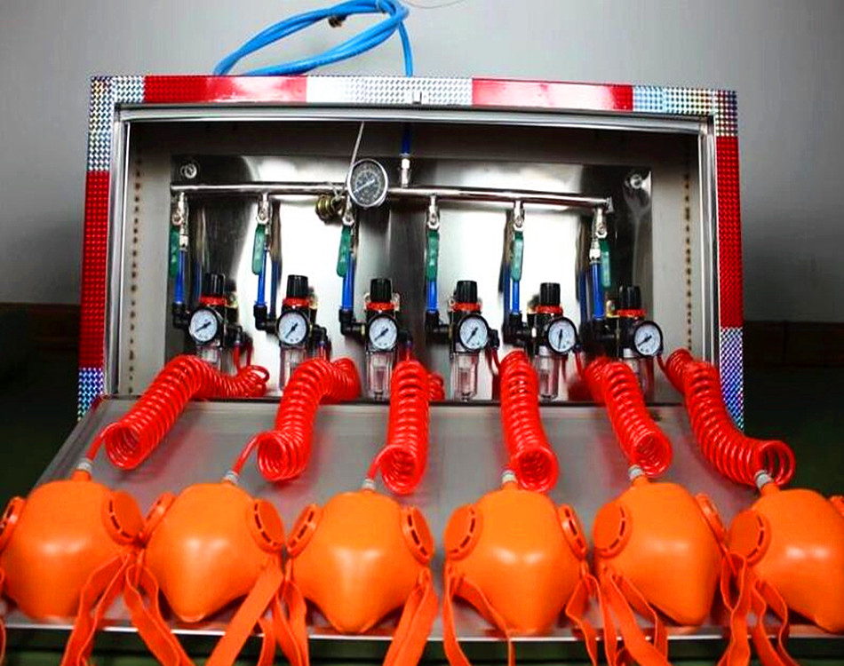 本款產(chǎn)品主要是由外管系統(tǒng)、壓風接口、進氣閥、進氣連接管、供氣量調(diào)節(jié)裝置、氣動減壓閥、排水裝置、面罩等構(gòu)成。